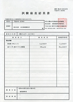 GFC加工の溶液は、下記の試験結果の通り有害性はございません。